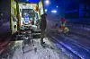 Efter i første omgang at have hjulpet kvinden, som lå midt på vejen, overlader Peter Motzfeldt og hans ven hende til ambulancefolk, der er ankommet til stedet.
