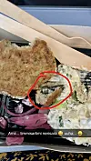 Aviâja Kielsen Andersen fik serveret en menu, som hun ikke havde forventet under en flyvetur til København. Inde i frikadellen lå en løs skrue.Privatfoto