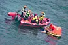 Kun 50 minutter efter nødlandingen blev de to piloter samlet op af en gummibåd fra inspektionsskibet Triton.Foto: ATW