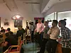 En oplægsholder fortalte de mange fremmødte om den særlige antiautoritære politiske kultur i USA, og der var live video-samtale med en repræsentant fra USA-Demokraternes kampagnekontor i Philadelphia.