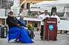 Vejret mandag var koldt og tåget, da regentparret ankom til Maniitsoq klokken 10. Viceborgmester i Qeqqata Kommunia Gideon Lyberth holdt en velkomsttale for regentparret