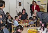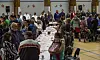 Der blev serveret kaffe, te, kager og lagkager til kaffemikken i idrætshallen i forbindelse med regentparrets besøg i Maniitsoq. Idrætshallen var fyldt med festklædte gæster