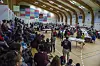 Da regentparret ankom til kaffemikken, var idrætshallen allerede fyldt op med mennesker. Da de kom ind i hallen, stod alle op og kom med jubel og glædesråb over deres ankomst