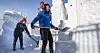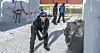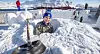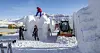 Projektlederen skal lige hjælpe en af de frivillige med at save en isblok til. Den skal bruges til præmiepodie, når vinderne af konkurrencen kåres på søndag klokken 15.00