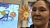 Margrethe Thorleifsen med sine elevers solbilleder i baggrunden.Foto: Margrethe Thorleifsen