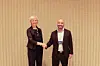 Vicegeneraldirektør for kommunikationsnetværk, indhold og teknologi, Renate Nikolay og vicedirektør i Tusass, Jonas Hasselriis giver hinanden hånden i forbindelse med EU's tilsagn om 255 millioner kronerFoto: Tusass