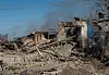 I Kharkiv dræbte et missilangreb på et apotek en 14-årig pige og to kvinder i landsbyen Lyptsi ifølge den regionale guvernør Oleh Synjehubov. På fotoet er redningsarbejdere i gang med arbejdet i landsbyen.