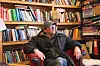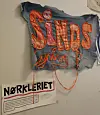 en laset klud hvor der står ”Sindssyning”. Overalt er der farverige malerier,