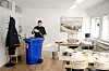 Vivian Motzfeldt løfter en bunke papirer og presser dem ned i en stor blå makuleringsskraldespand tirsdag formiddag. En særlig tid er slut i Vivian Motzfeldts politiske liv.