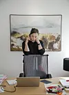 Sidst er det partiformand Aleqa Hammond. Vivian Motzfeldt går hvileløst rundt, stopper op ved sin kontorstol og piller lidt ved forskellige ting mens hun taler.