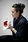 En ballon som livmoder og en tennisbold som baby viser, hvordan fødslen foregår.Foto: Oscar Scott Carl