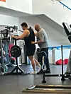 Aqqalu Lukassens far, Lars er med til træningen hver dag for at træne ham.Privatfoto