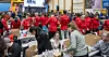 I hallen var der opstillet borde, snacks og drikkevarer til de mange løbere og et set-up med mulighed for at få taget holdfoto inden eller efter løbeturen.