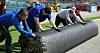 Men Grønland er ikke et optimalt sted at bygge kunstgræsbaner rent teknisk, fortæller en af montørerne.