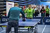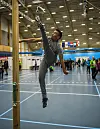 Host City-medlem naalakkersuisoq Nivi Olsen i en badmintonkamp mod AWG2016's styrekomiteformand, Christian Keldsen